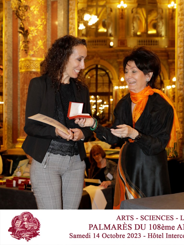« Le 14 octobre 2023, j’ai eu l’immense honneur d’être récompensée par l’Académie des Arts, Science et Lettres de Paris qui m’a décerné le diplôme ainsi que la médaille d’or pour mon travail artistique. »